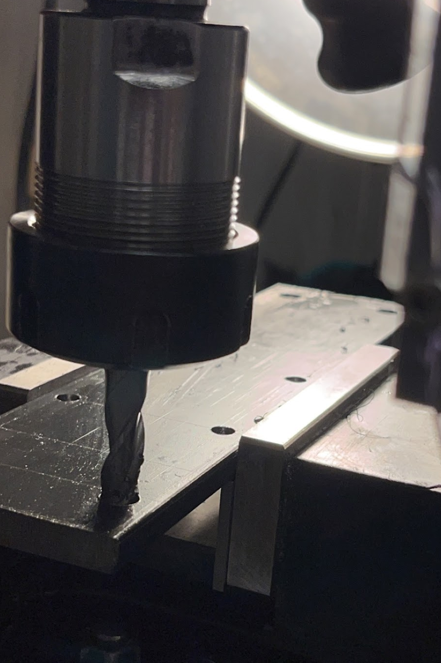 I fabricated mounts for each motor at the back using a vertical mill. Additionally, I successfully connected each motors their wheel axles.
