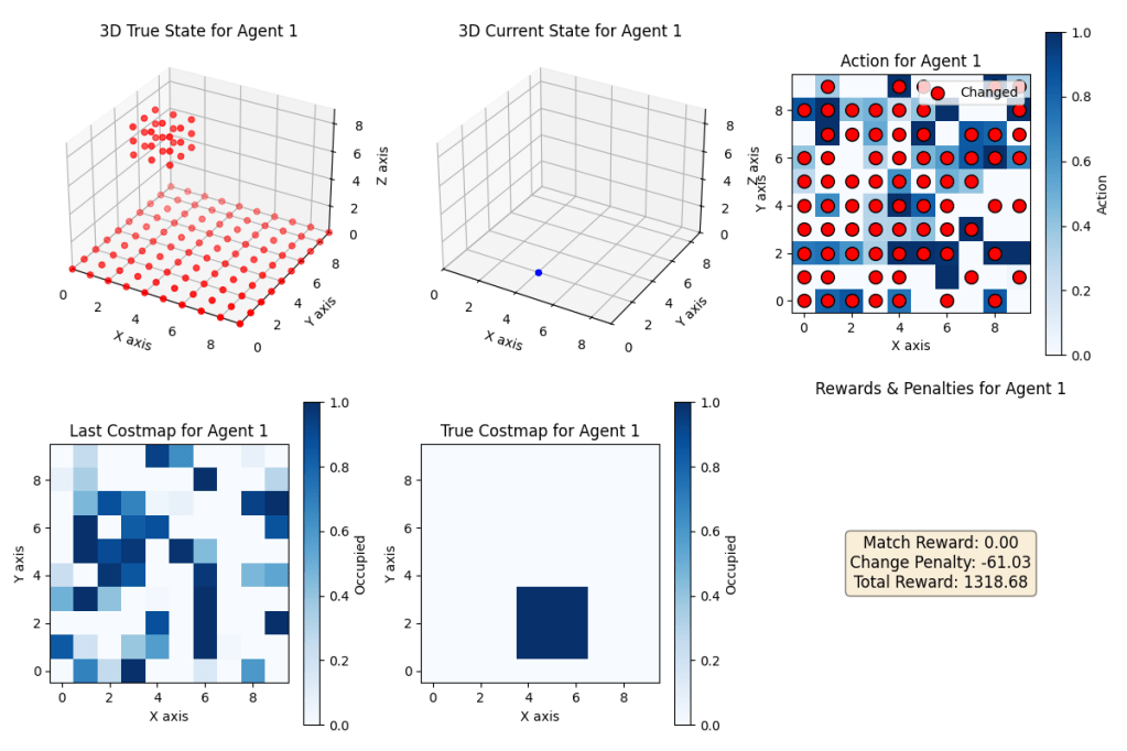 - 3D True State: A 10x10x10 space that represents the ground truth of an area.