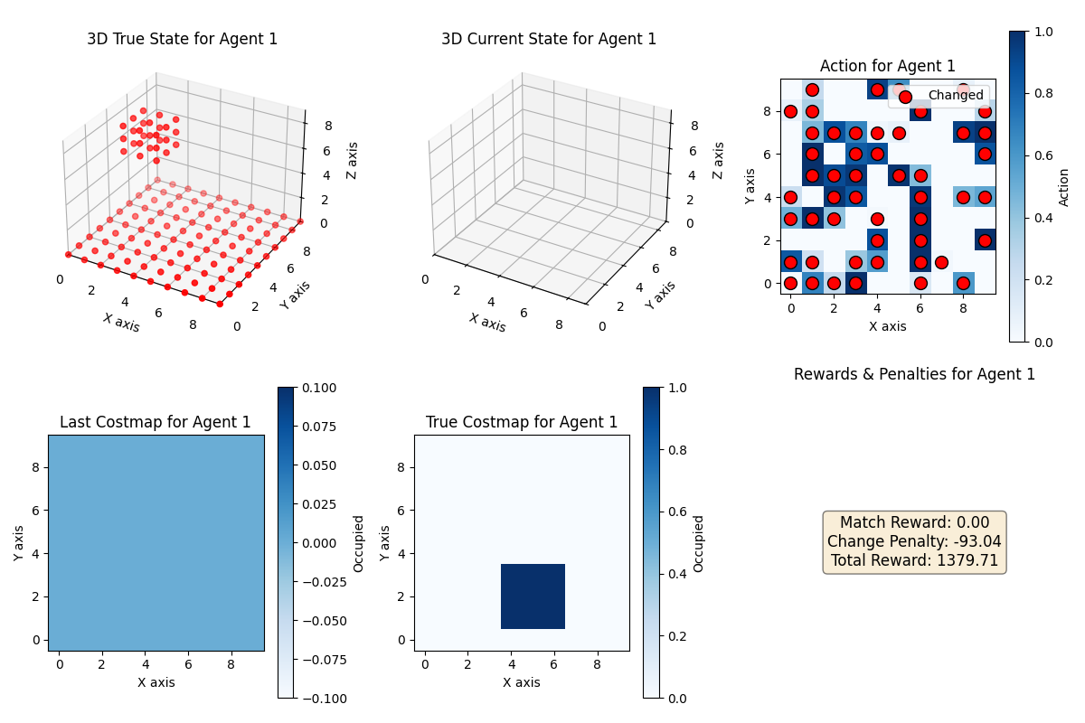 - 3D True State: A 10x10x10 space that represents the ground truth of an area.